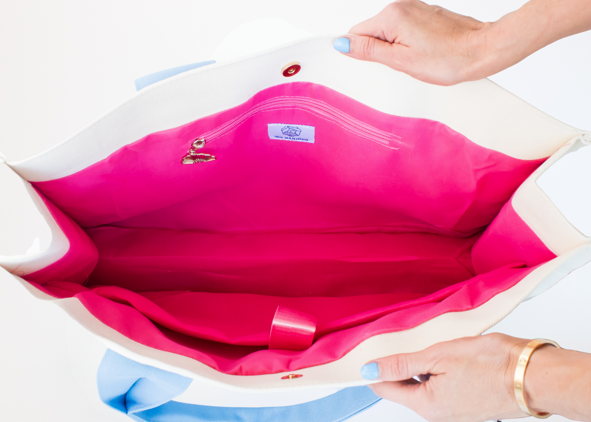 Not your average tote, the Cowgirl Carry All was designed to hold everything you need for Mahjong on the go. Spacious enough for a full-size tile set (it fits our Cowgirl Tile Bag), a set of racks, and a playing mat, it also features thoughtful compartments inside: a small zippered pocket for personal items and a larger padded pocket perfect for your Mahjong cards, Mahj Marker tape, or even a laptop.