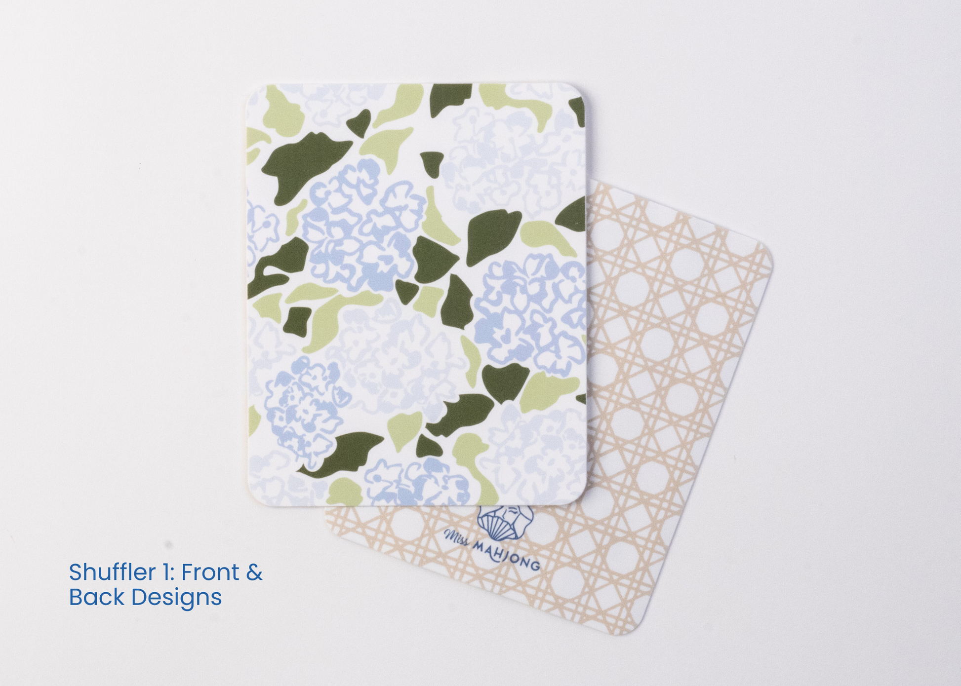 A perfect pair to match with your Miss Darling collection, the Pinkie Up Shuffler Set features a fun saying on one shuffler, hydrangeas on the other, and a caning pattern on the back of each. Made from sturdy PVC, they'll hold up game after game.